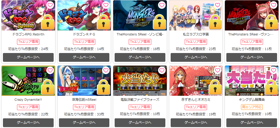 | チケット | チケットエリアのゲーム参加に使う通貨 | 次の段階のゲーム参加 |