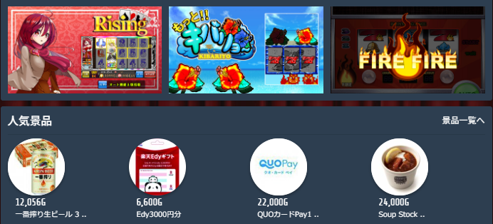 まずは、獲得した通貨で景品交換できるスロット特化型のサイトであることがわかったね。