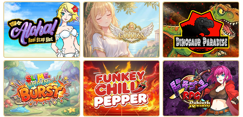 特に、トップページでは「新台情報」として新しめの機種が目立つ位置に表示されており、記事作成時点では「The Dozing GODDESS」「ダイナソー★パラダイス!!」「SLIME CHAIN BURST」「FUNKEY CHILI PAPPER」などが前面に出ています。つまり、プレミアムハンターは昔の台をただ置いているだけではなく、新台を打ち出しながら継続的に遊ばせる設計になっていると考えられます。